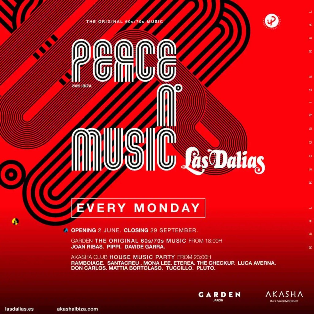 Peace N’Music se celebra cada lunes de esta temporada 2025, empezando con el Opening el 2 de junio y hasta el Closing el 29 de septiembre de 2025.